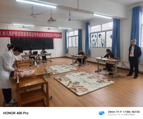 2025年9月27日,湖北职业技术学院教育与艺术学院成功组织并圆满完成了“1+X幼儿照护职业技能等级证书(中级)”的考证工作。本次考试共有60名婴幼儿托育服务与管理、学前教育等相关专业的学生参加,整个过程组织严密、秩序井然,全面检验了学生的理论素养与实践操作能力,标志着学院在深化职业教育改革、推进“岗课赛证”综合育人方面取得了又一实质性成果。