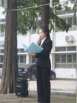 在迎风飘扬的国旗下,2025年国家奖学金获得者,湖北省技能大赛三等奖胡瑶同学以《以我青春之光,担当时代重任》为题,向同学们诠释了自己对于学前教育专业的认知,和同学们探讨:我们该如何成为自己心中的教育者?用奋斗青春,担当时代重任。她向同学们发出三点倡议:第一,以“奋斗”为犁,深耕专业沃土;第二,以“挚爱”为灯,照亮童真世界;第三,以“创造”为翼,勇担时代重任。