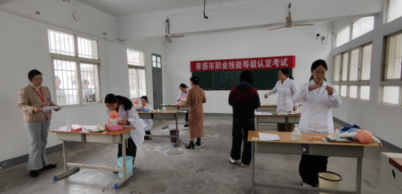 考试分理论和实操两个环节。理论考试严格按照国家职业技能标准命题,技能考核环节紧密对接岗位实际,重点考查学生的实践操作能力与综合应用能力。考评人员严格依据评分标准,对学生的操作规范性、熟练度及人文关怀素养进行了全面评估。整个实操过程组织严密,学生操作有条不紊。本次考试不仅检验了学生的专业能力,更是对学院教育教学质量的一次全面评估。通过职业技能等级认定,学生不仅获得了国家认可的职业技能等级证书,更在备考过程中提升了职业素养、增强了岗位适应能力,为今后顺利就业、高质量就业提供了有力保障。