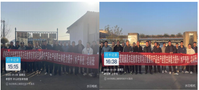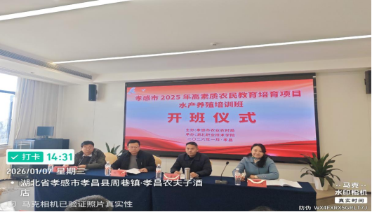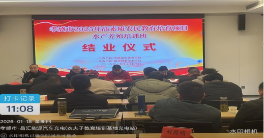 2026年1月15日,由湖北职业技术学院教育与艺术学院承办的“孝感市2025年度高素质农民培育项目重要农产品生产经营主体能力提升(水产养殖)培训”圆满结束。本次培训紧扣“综合素养、专业技能、线上拓展”三大模块,在为期九天(1月7日至15日)的密集教学中,来自全市的43名水产养殖骨干代表完成了从政策理论到前沿技术的系统学习,全面提升了专业能力,为本地水产养殖产业转型升级与乡村振兴战略实施提供了坚实的人才支撑。