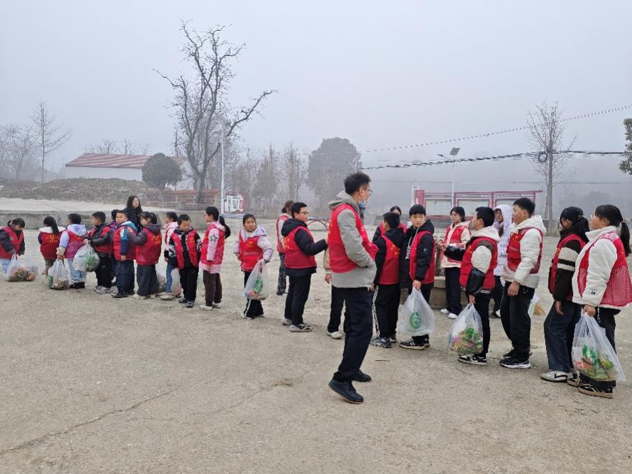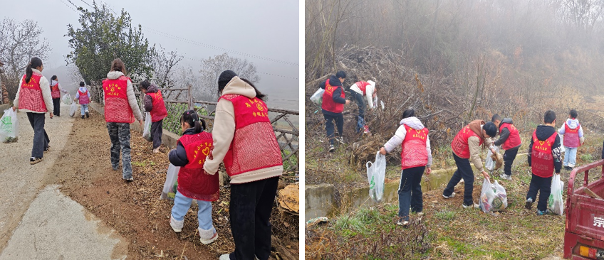 为助力美丽乡村建设,营造整洁宜居的村庄环境,2月11日上午,湖北职业技术学院教育与艺术学院驻村工作队联合孝昌县小悟乡万冲村委,组织了一场别开生面的“大手牵小手”村庄环境卫生清理活动。教育与艺术学院250109**班熊依、250109**班周蓓蕾两名学生志愿者带领万冲村“爱心托管班”的25名中小学生共同参与。