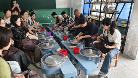 为加强各院系辅导员群体交流学习,缓解辅导员工作压力,充分展示雅乐文艺辅导员工作室美育实践工作特色,4月15日14:30—16:30,由学校学工部主办、教育与艺术学院雅乐文艺辅导员工作室承办的“解压陶乐·与‘泥’同行”辅导员陶艺团辅活动,在卧龙校区科技楼108陶艺实训室顺利开展,全校各院系20余名辅导员参与活动。